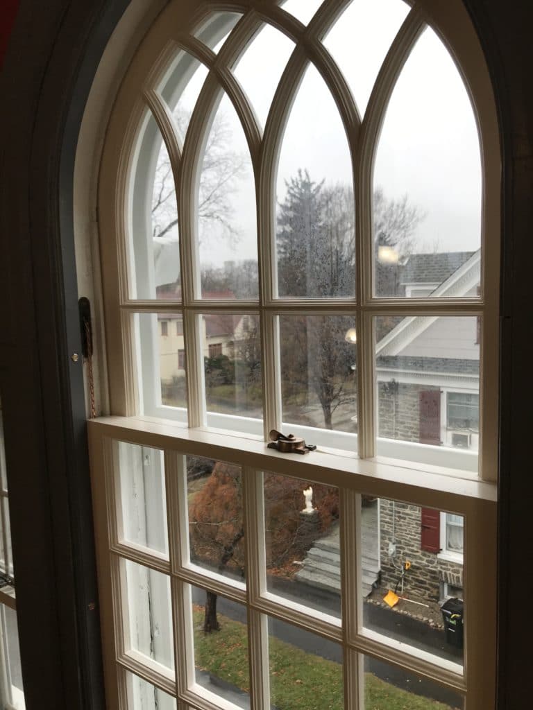 The bulk of the work performed on the windows is done at our shop. We use steam to remove the old glazing, paint, and glass from the sashes. The glass is catalogued, cleaned, and set aside for re-installation. The sashes are stripped down to the bare wood, removing all layers of paint.