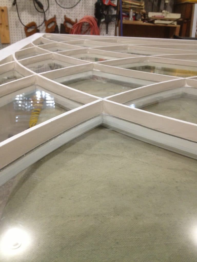 At last, two coats of high quality exterior and interior paints are applied to the sash and the original glass is installed and glazed. The sashes must then sit for two weeks to allow the glazing to cure. Finally, we apply final coats of paint, install the weatherstripping on the sashes and prepare the windows for transport.